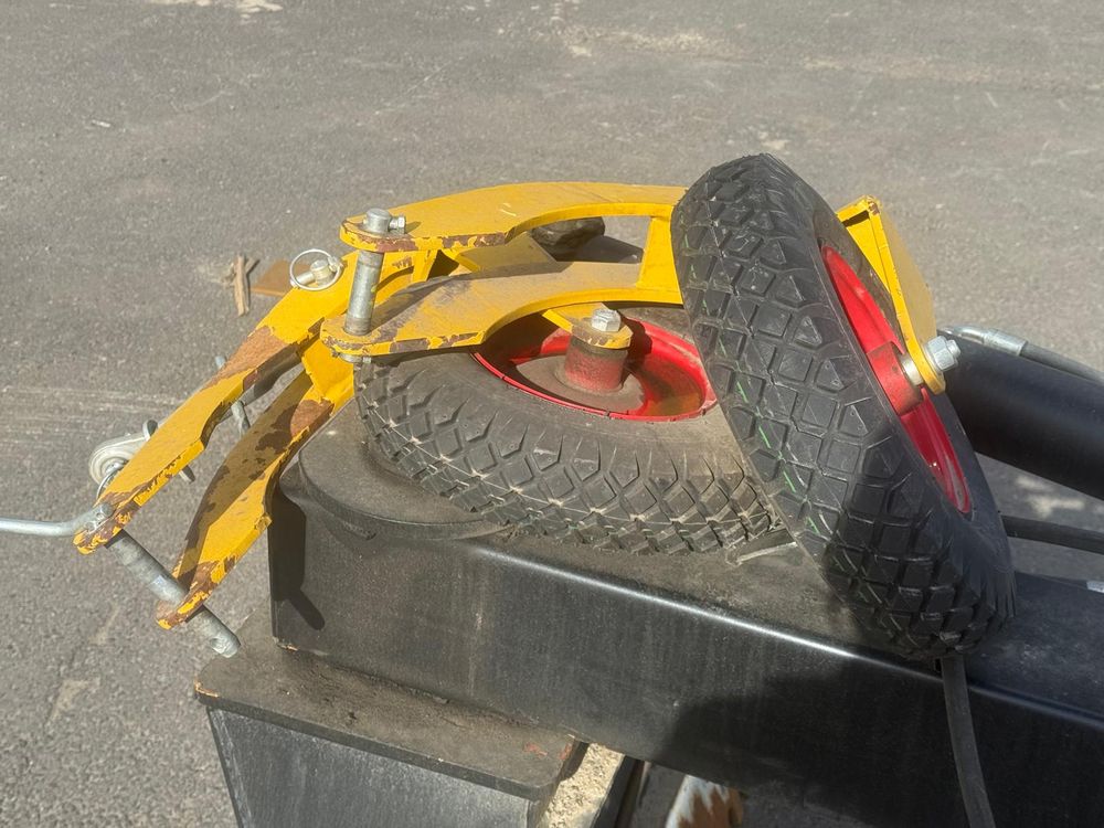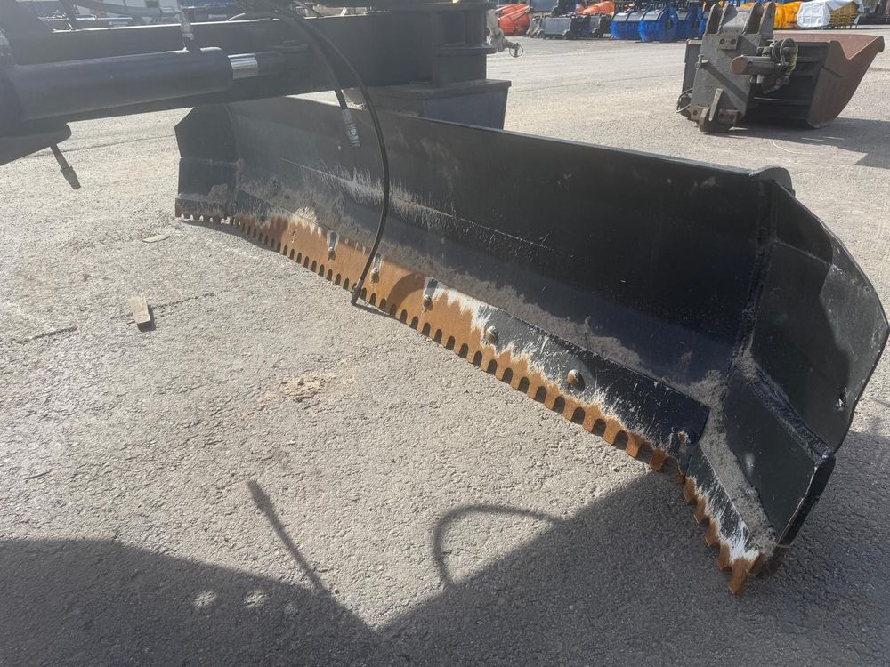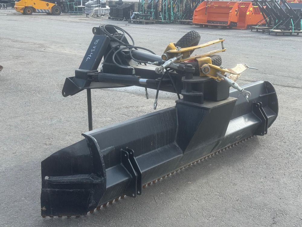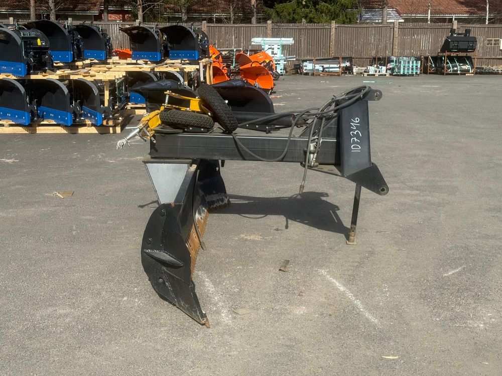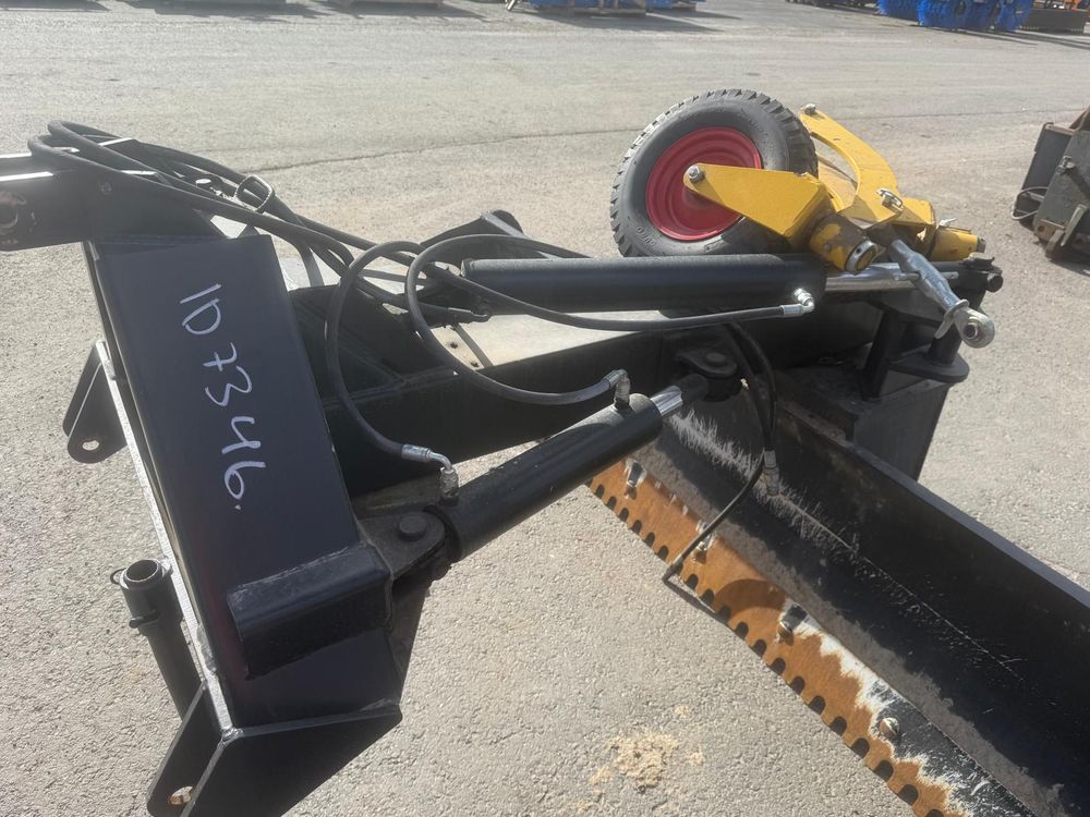 Käytetty hydraulinen takalana 70-110hv traktoreihin. Vakiona hydraulinen levyn- ja rungonkääntö. Irroitettavat ja säädettävät 4.00-8″ tukipyörät. Levynkääntö 270 astetta. Levyn korkeus 63cm. Vankka 90mm kääntöakseli. Sylinterin varsi/mäntä 50/80mm. Hyvät rasvauspisteet. Käännettävä Hardox kampaterä. Työpaino 550kg. Takalanaan tehty molemmin puolin n. 30cm jatkopalat. Tukipyörät irtona mukaan.