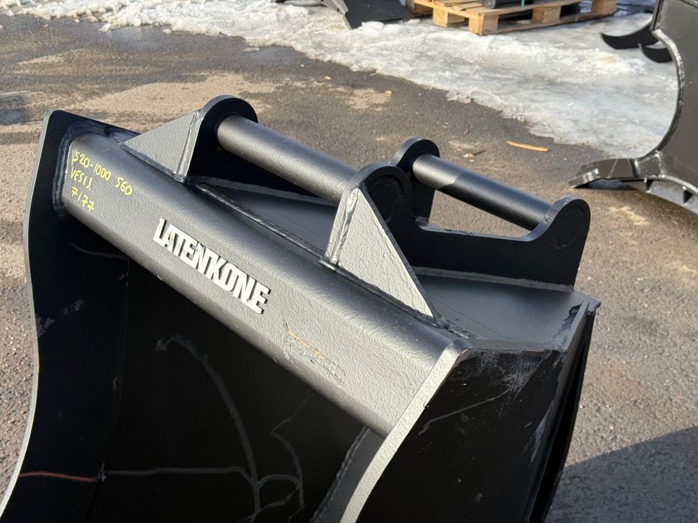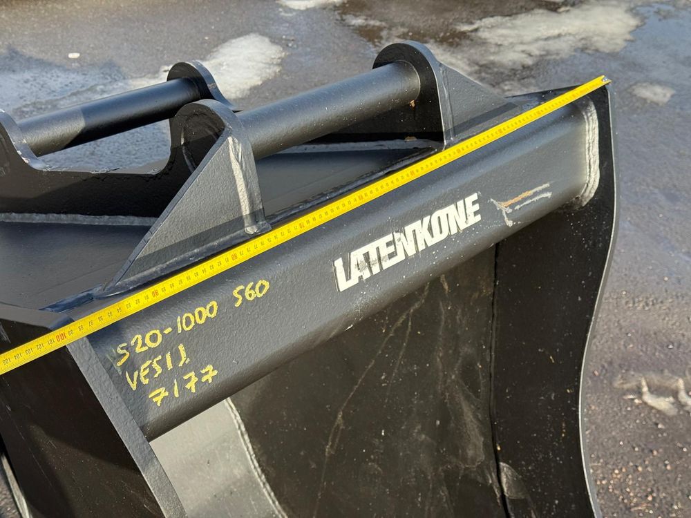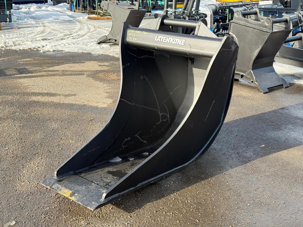 Vesijohto- ja sajaojakauha 18-25ton koneisiin. Pitkä pohja ja hyvin tyhjenevä malli. S60 kiinnike. Huulileveys 520mm, yläleveys 1000mm. Valmistettu kokonaan kulutusteräksestä. Pohja 16mm HB400, etupystyt 20mm HB400, huuli 25mm HB500, sivuposket 10mm HB400. Toimitus Kiitolinjalla/Kaukokiidolla.