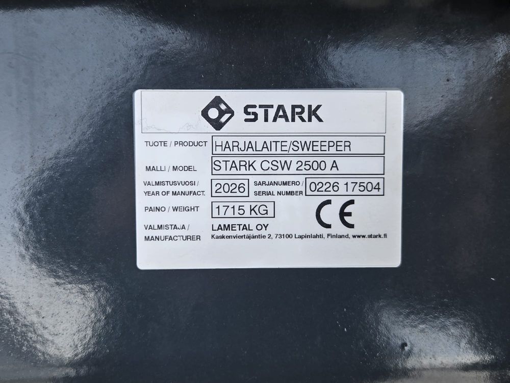 Stark CSW 2500 A keräävä harjalaite. Ammattilaisen valinta katujen ja pihojen harjaukseen. Hyvä näkyvyys matalan rakenteen ansiosta. Suuren pohjaluukun ansiosta helppo tyhjentää. Harjatelan ja sovitteen kellunta viimmeistelevät työjäljen. Harjaan sopivat pulttikiinnitteiset Stark-Fit sovitteet.