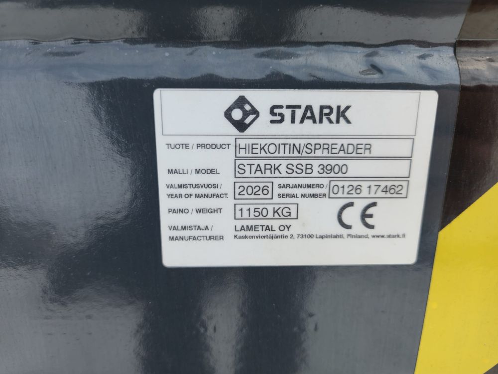 Hiekoituskauha 3900L tilavuudella. Huulileveys 249cm, syvyys 147cm, korkeus 249cm, Paino 1100kg-. Hiekoitusleveys 249cm. Tehokas ja tarkka työlaite hiekan, sepelin ja suolan levitykseen 0-16mm raekoolle. Varusteet: Huulilevy kulutusterästä (500 HB), Murskainakseli, Suojakalterit, Kaksoispaineen varoventtiili, virtauksensäätöventtiili, Huomiotarroitus ja heijastimet. Hiekoituskauhaan valittavissa yleisimmät STARK FIT kiinnikkeet.