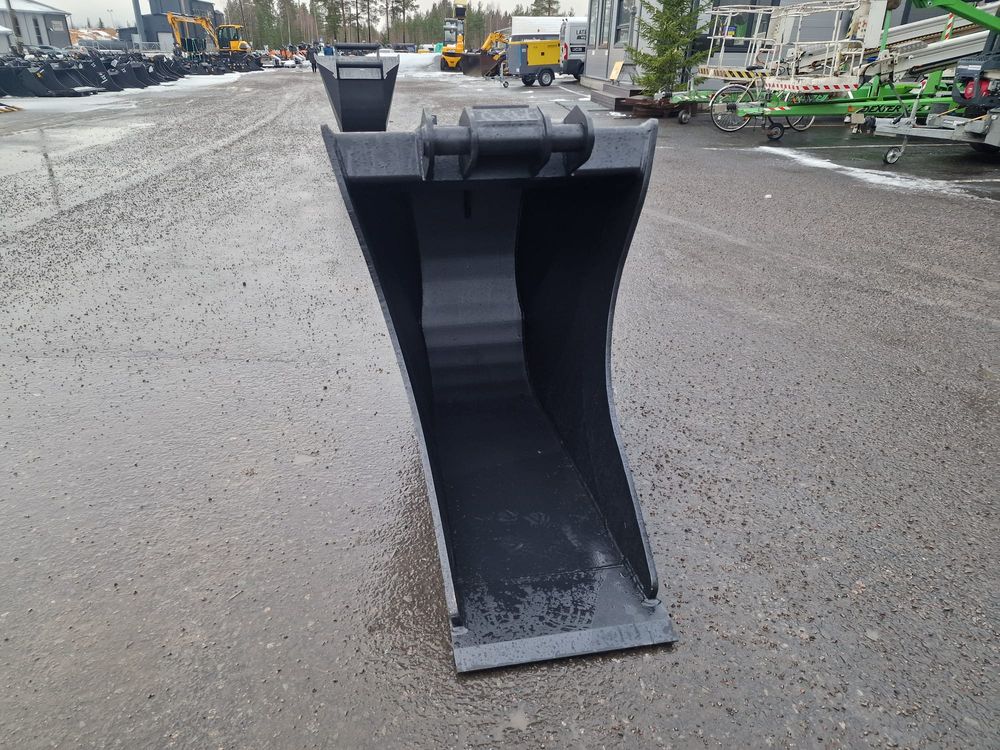 Vesijohto- ja sajaojakauha 18-25ton koneisiin. Pitkä pohja ja hyvin tyhjenevä malli. NTP10 kiinnike. Huulileveys 520mm, yläleveys 1000mm. Valmistettu kokonaan kulutusteräksestä. Pohja 16mm HB400, etupystyt 20mm HB400, huuli 25mm HB500, sivuposket 10mm HB400. Toimitus Kiitolinjalla/Kaukokiidolla.
