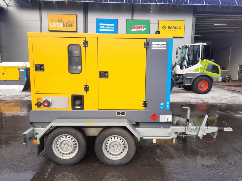 Vähän käytetty Atlas Copco QES 60 generaattori. Vuokrahinta sisältää käyttötunteja 8h/pv. Lisätunnit sopimuksen mukaan. Nimellistaajuus 50 Hz, Nimellisjännite 400V, Nimellisantoteho 66kVA/49kW, John Deere 4045HFG81 moottori, Varusteita: Vetovarustus, Moottorin ilmanlämmitin, Akkulaturi, päävirtakytkin, letkulämmitin ja erillisen PA-Säiliön liitäntä. Tunnit 653. Pistokkeet 125A, 63A, 32A, 16A 3-vaihe ja 2 x 16A 1-vaihe pistokkeita, Paino 1990kg. Kysy tarjous!