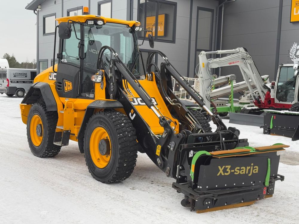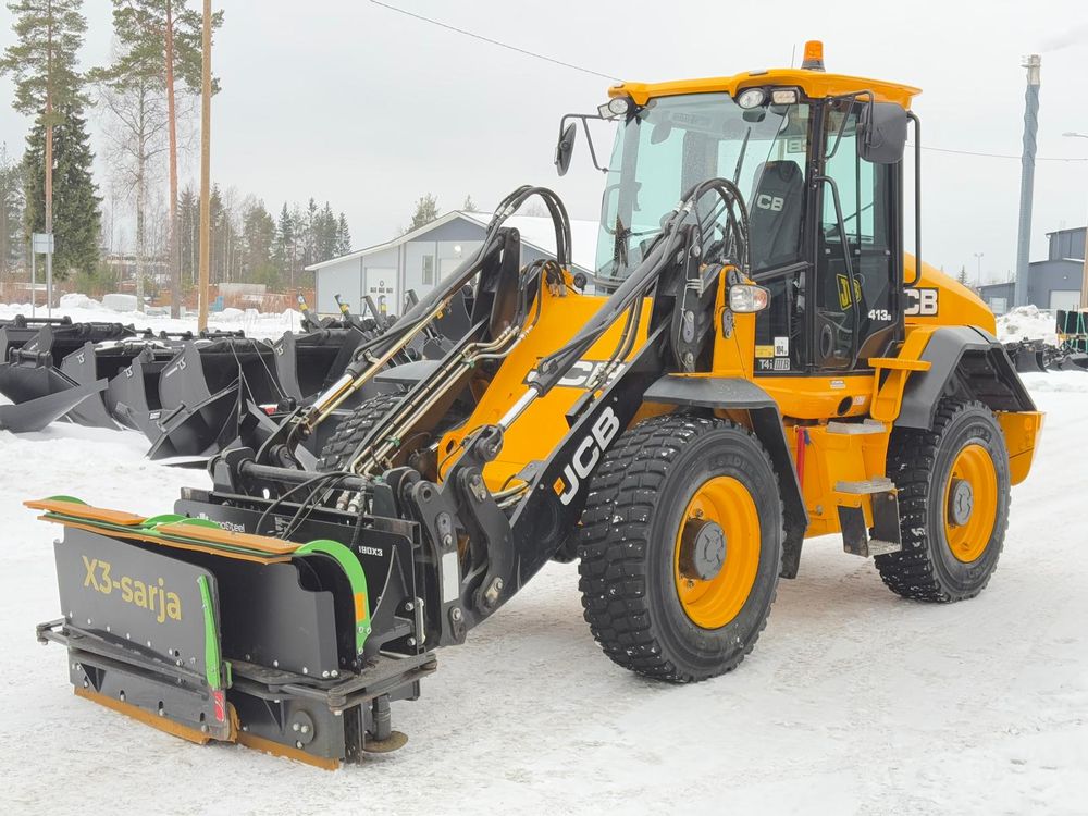 JCB 413S pyöräkuormaaja. Nopea 50km/h malli, ei ureaa. Hydraulinen Volvo pikakiinnike, 2x lisähydrauliikka, automaattirasvari. Työvalot eteen ja taakse. Hyvät talvipinta renkaat. Matekon maahantuoma. Pienillä tunneilla oleva alkuperäinen siisti JCB! Kysy myös vuokralle.