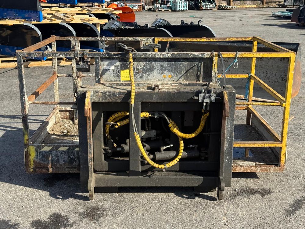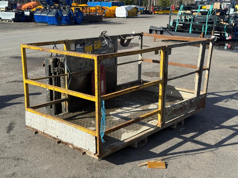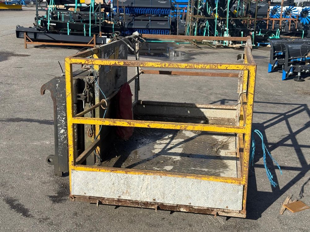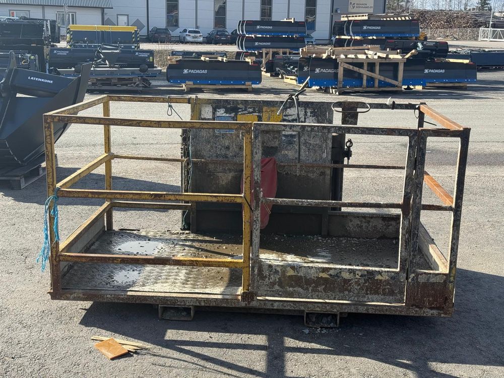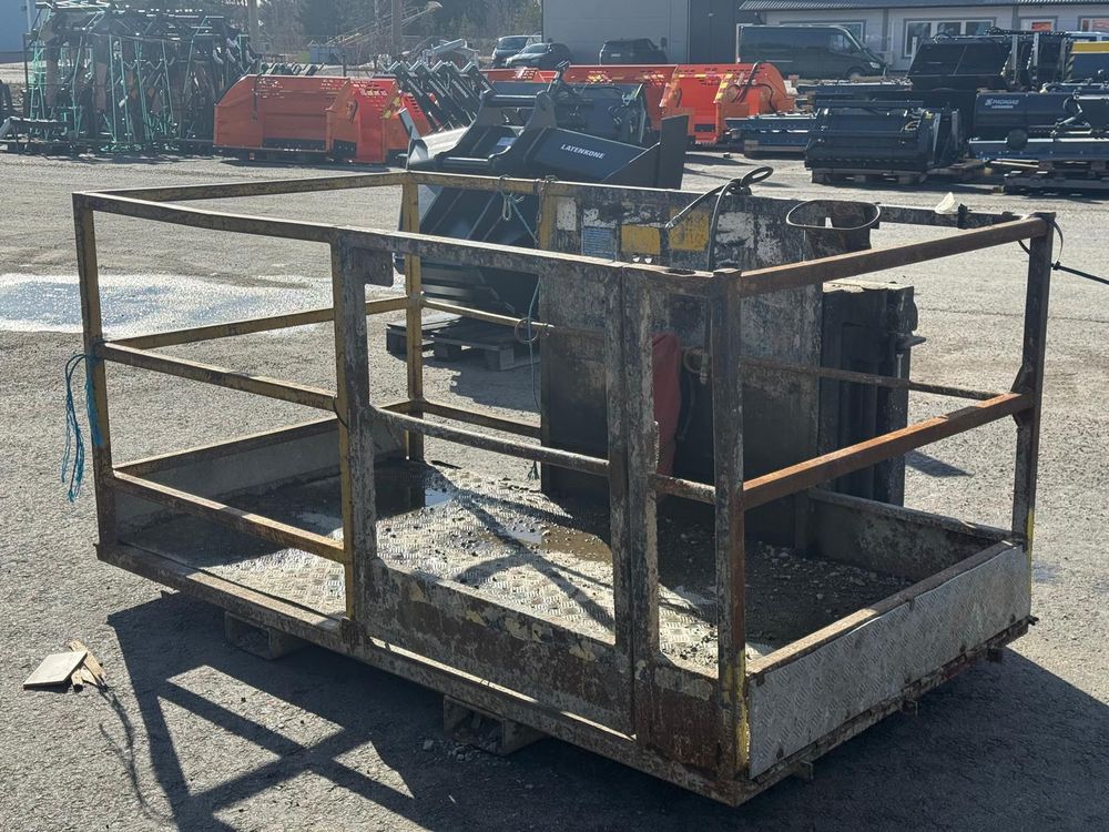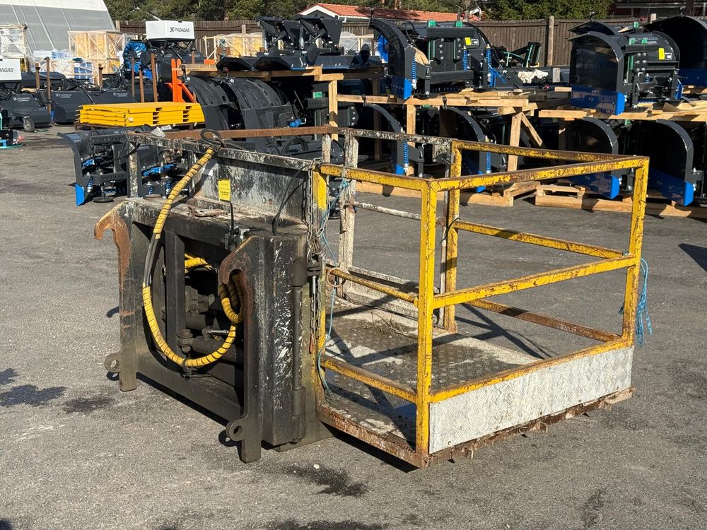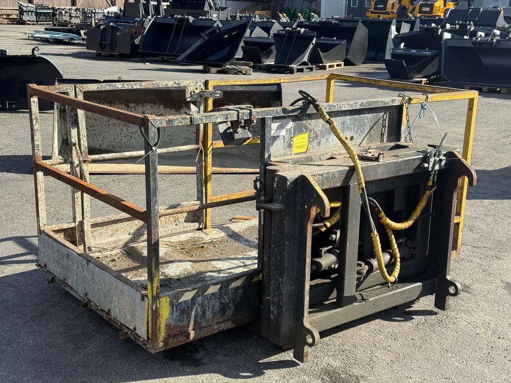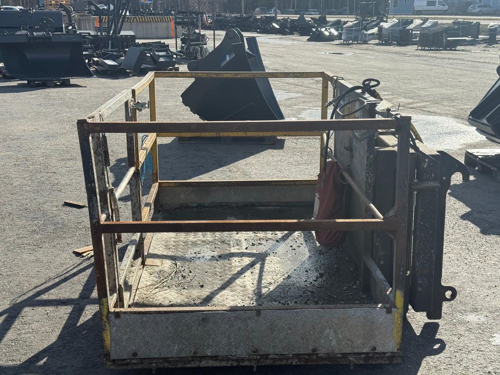 JCB kurottajan hydraulisesti kääntyvä henkilönostokori. JCB Q-fit kiinnitys. Toisen sylinterin letkut tulpattu.