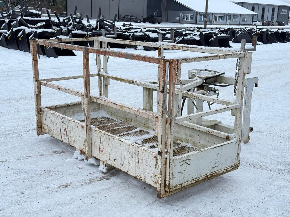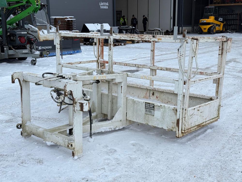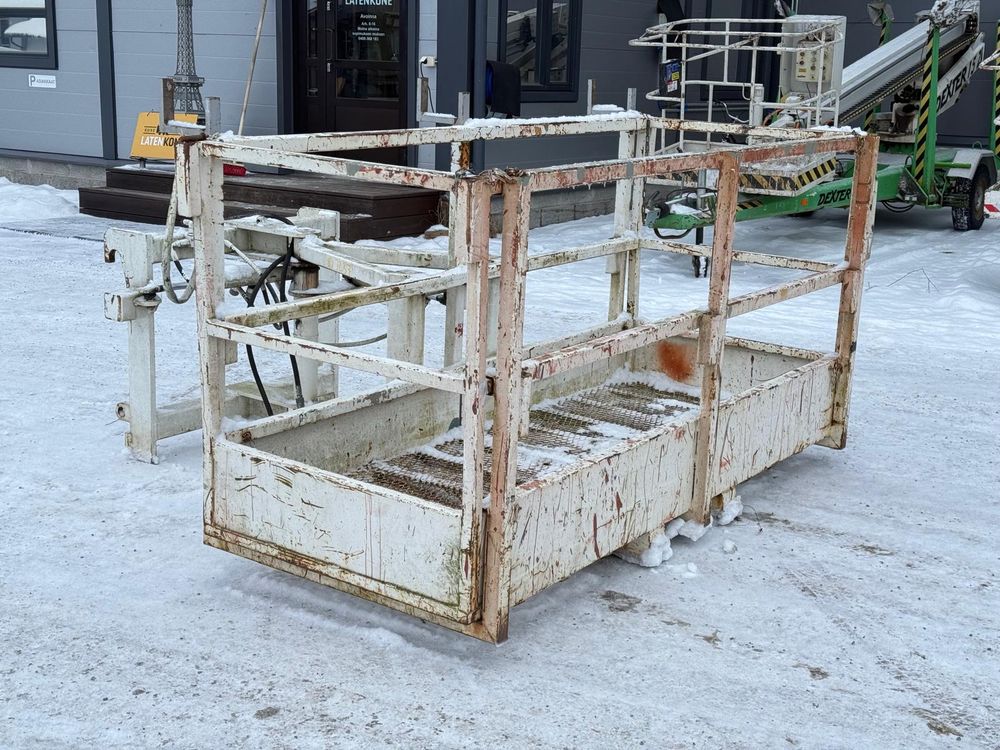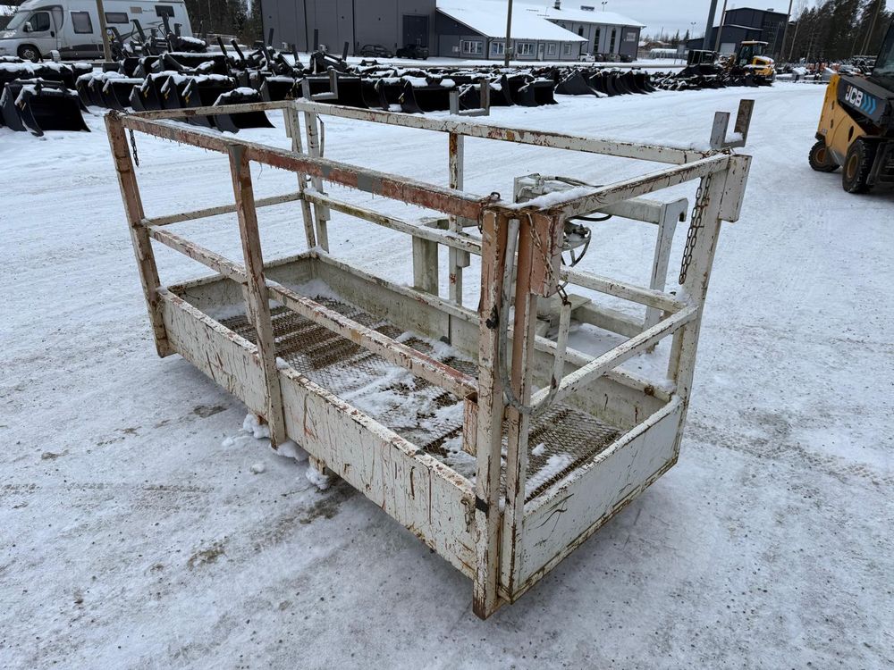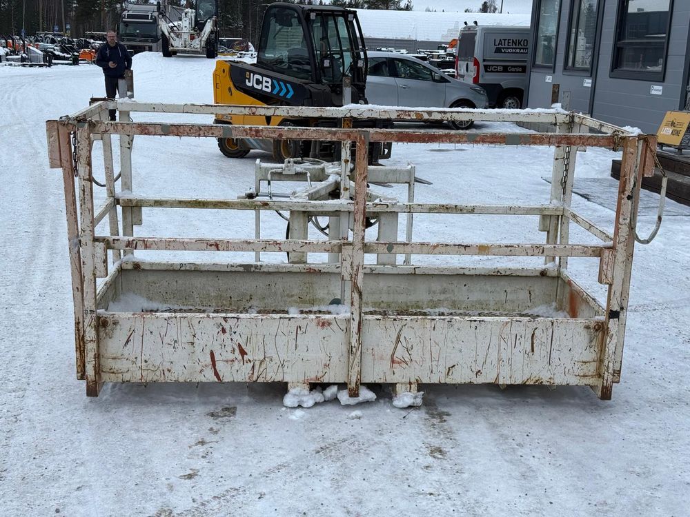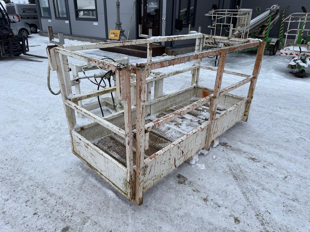 JCB kurottajan hydraulisesti kääntyvä ja molemminpäin jatkettava henkilönostokori. JCB Q-fit kiinnitys. Maksimi kuorma 450kg / 3 henkilöä. Valmistaja Satateräs Oy. Malli M 450 NT.