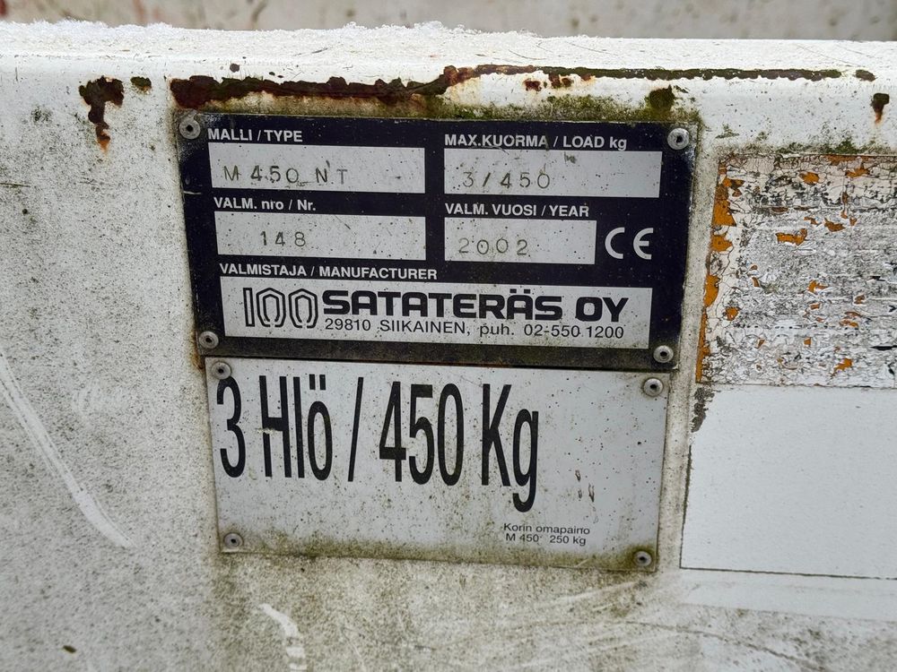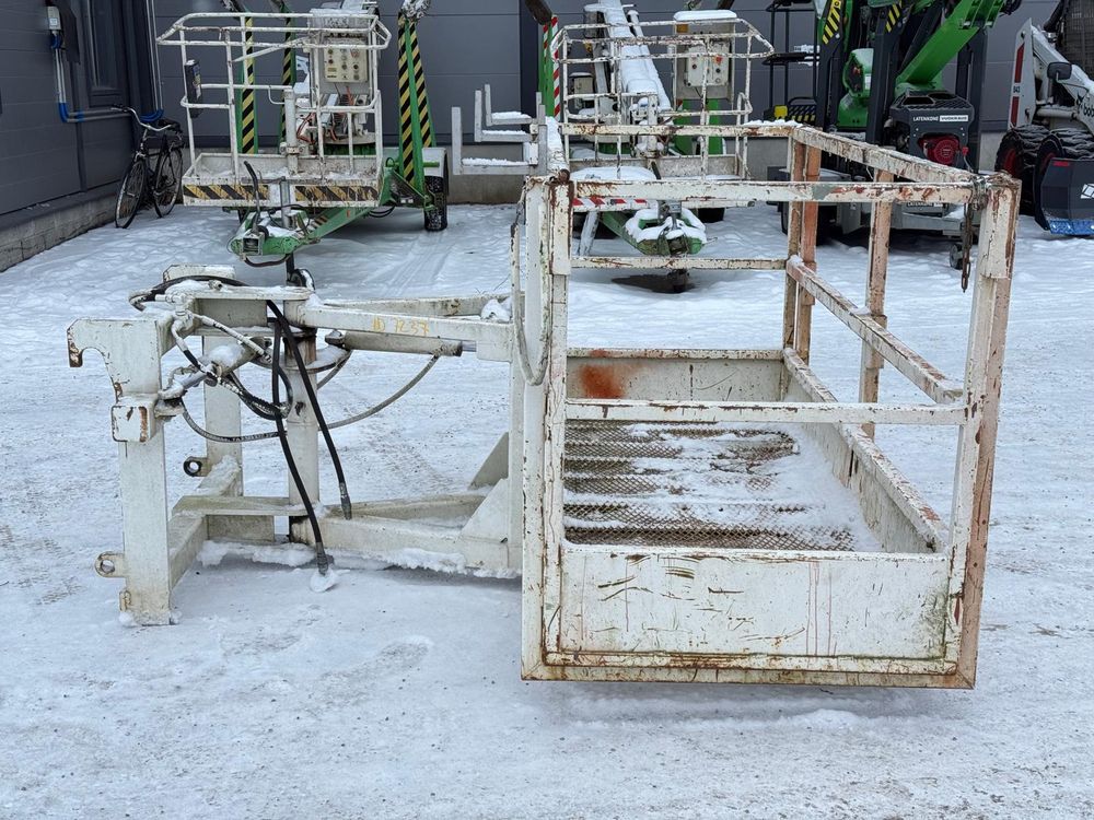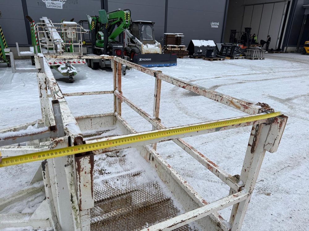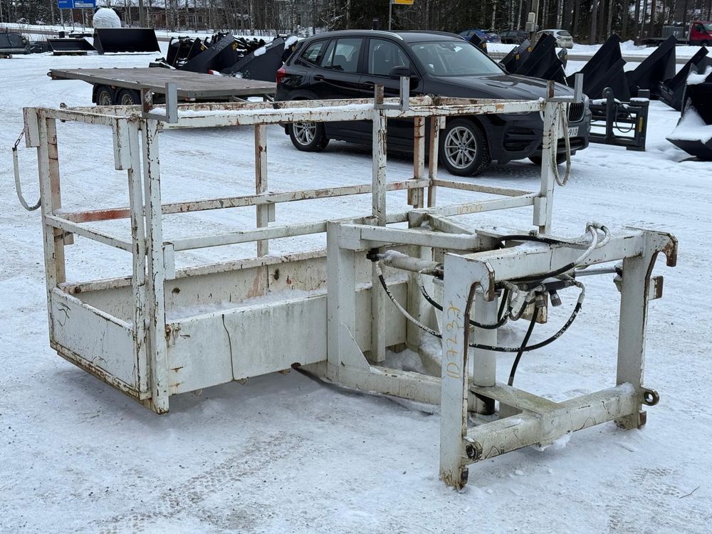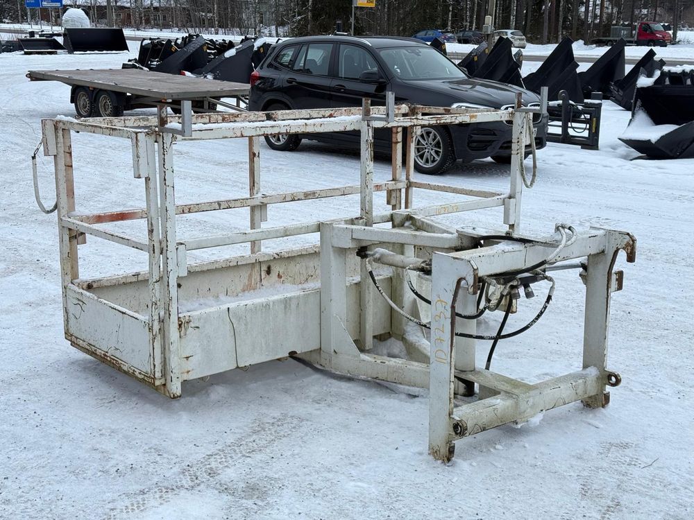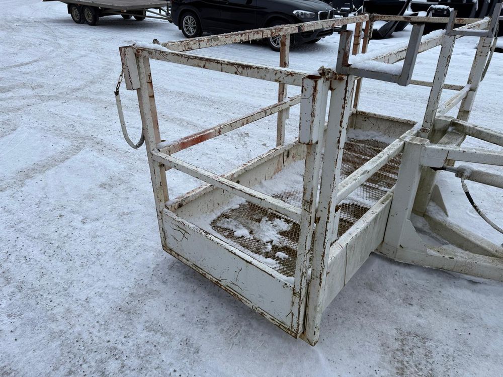 JCB kurottajan hydraulisesti kääntyvä ja molemminpäin jatkettava henkilönostokori. JCB Q-fit kiinnitys. Maksimi kuorma 450kg / 3 henkilöä. Valmistaja Satateräs Oy. Malli M 450 NT.