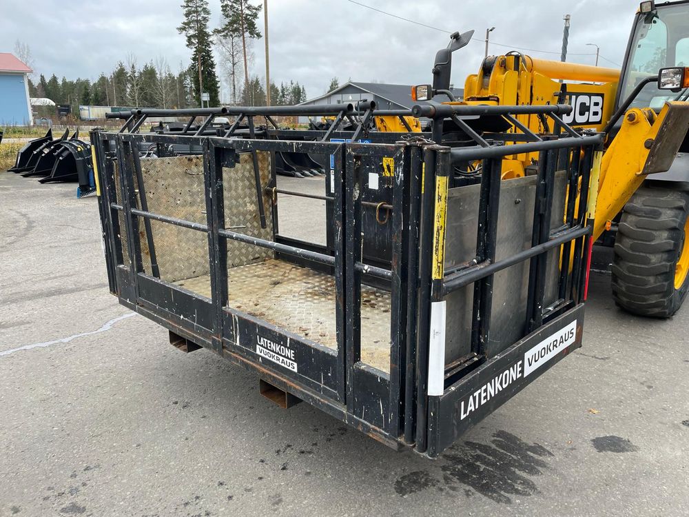 JCB kurottajan hydraulisesti kääntyvä ja molemminpäin jatkettava henkilönostokori. Maksimi kuorma 300kg / 2 henkilöä.