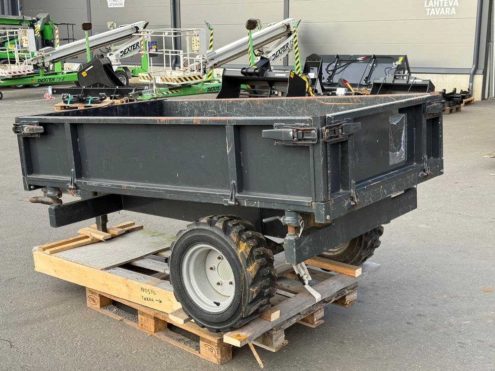 Kuormaajassa on oltava hydrauliliitäntä takana ja vetokoukku. Kantavuus 1500kg.