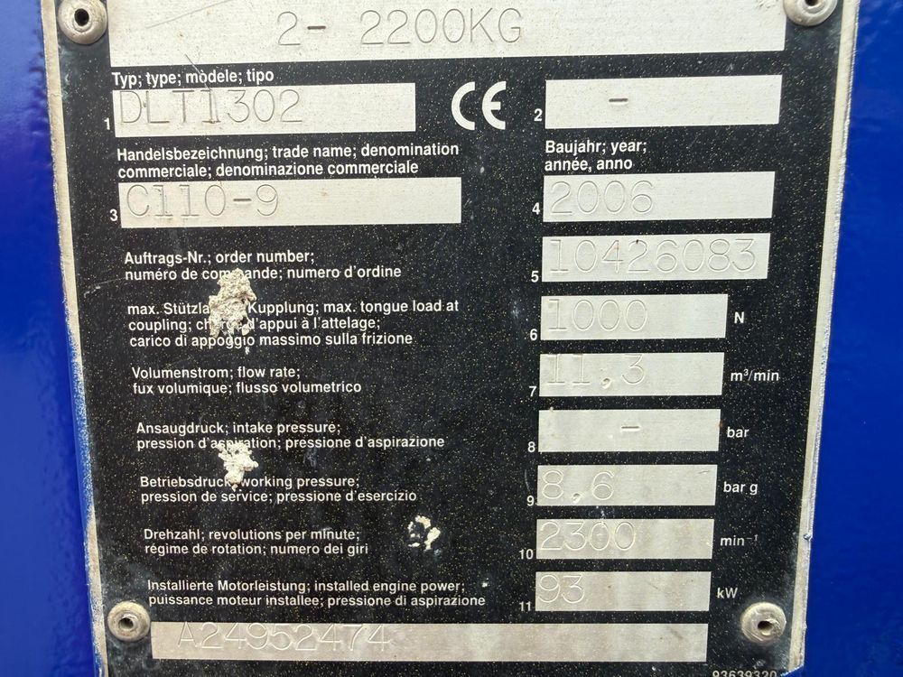Compair C110-9 vaunukompressori. Tuotto 11,3m3/min, Paine 8,6 bar,