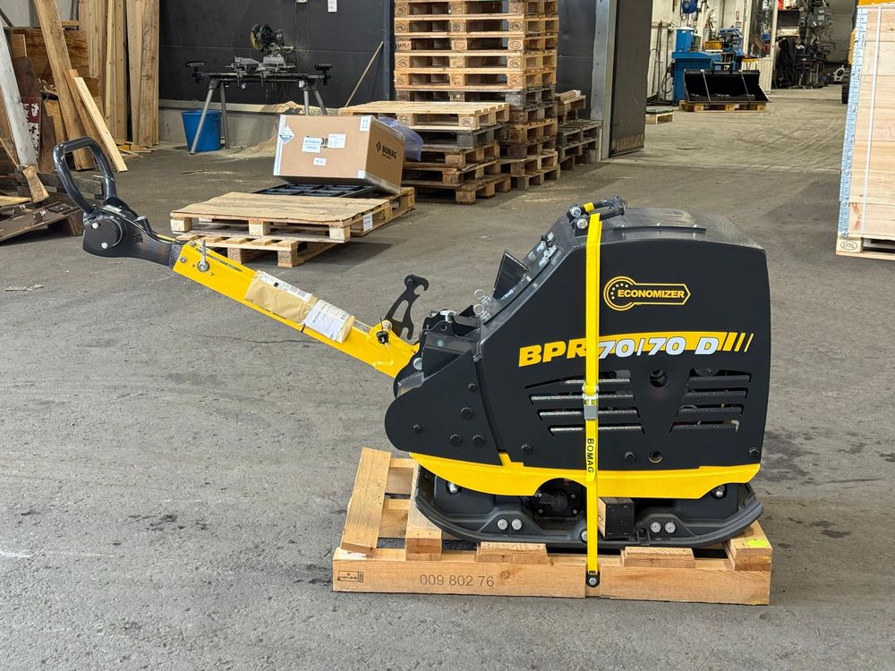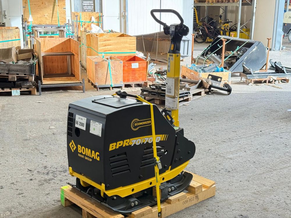 Bomag BPR70/70DE maantiivistäjä tiiveysmittarilla. Työpaino 570kg. Tiivistyvyys 45cm. Työleveys 700mm. Hatzin 9,3kW diesel koneella. (ilman levikepaloja 550mm). Työnopeus 0-28 m/min. Iskuvoima 70kN ja taajuus 66Hz. Kahteen suuntaan liikkuva. Tämä kone on varustettu tiiveysmittarilla. Sen avulla pystytään seuraamaan maan tiivistyvyyttä reaaliajassa. Tämä helpottaa ja nopeuttaa tiiviistystyötä laadusta tinkimättä. Tuttua Saksalaista laatua! Ota yhteyttä ja kysy tarjous toimittettuna!