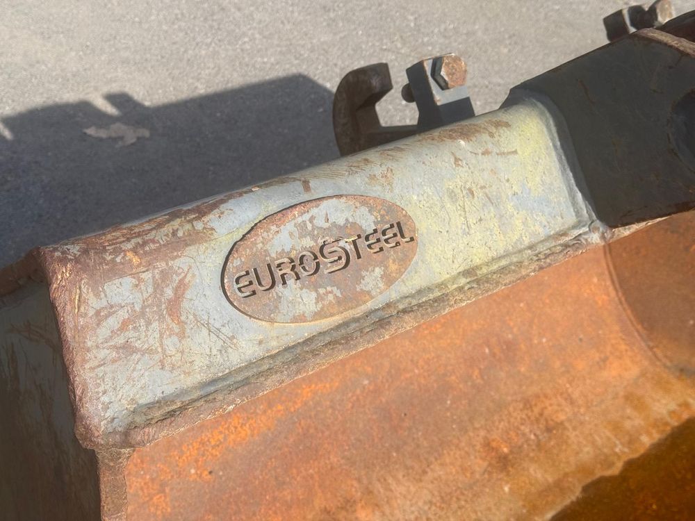 Käytetty luiskakauha Eurosteel 1800mm NTP10 kiinnikkeellä. Huulillevy kulunut, mutta muuten kauha vielä ryhdissään.