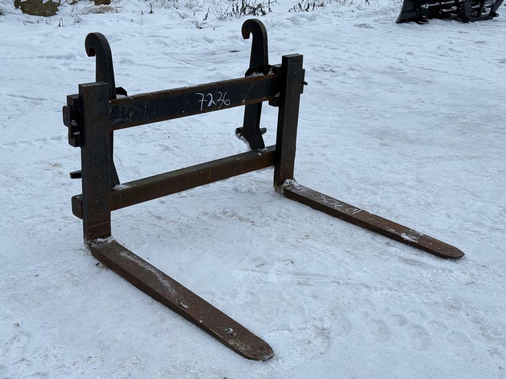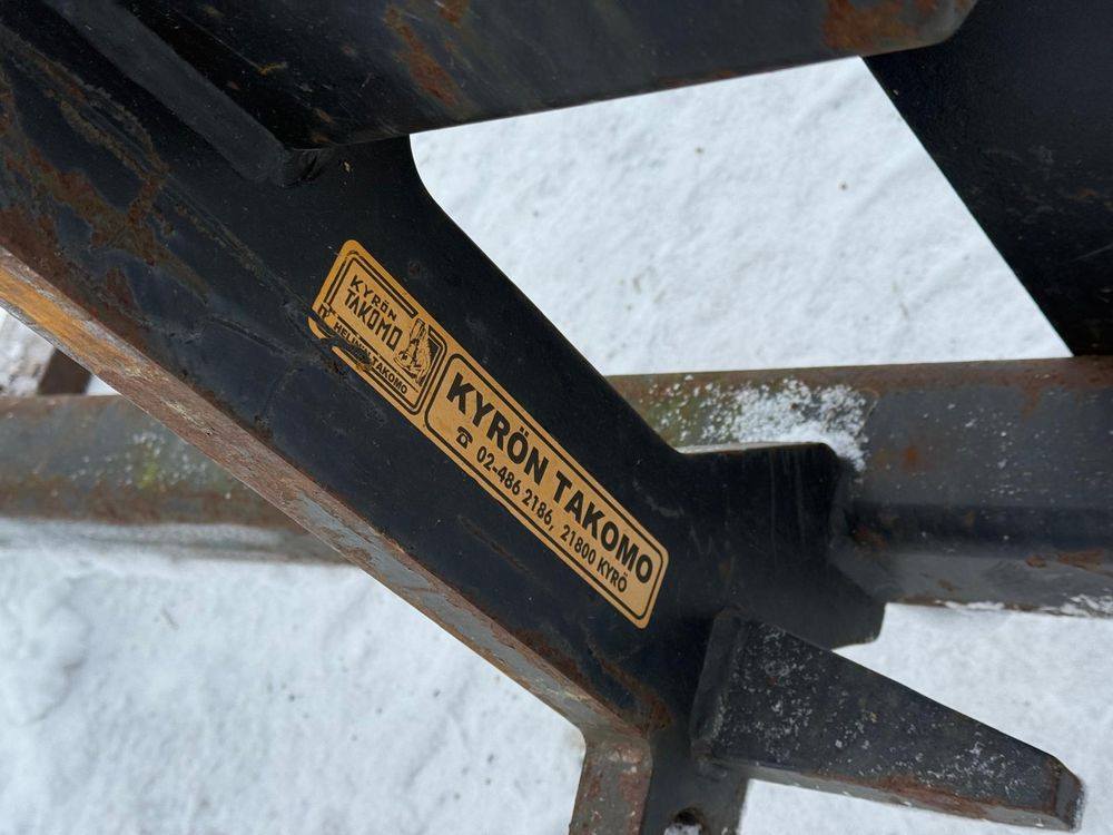 Kyrön Takomon trukkipiikit JCB Q-fit kiinnityksellä. Kelkkaleveys 150cm ja haarukka pituus 120cm. Kantavuus 5000kg.