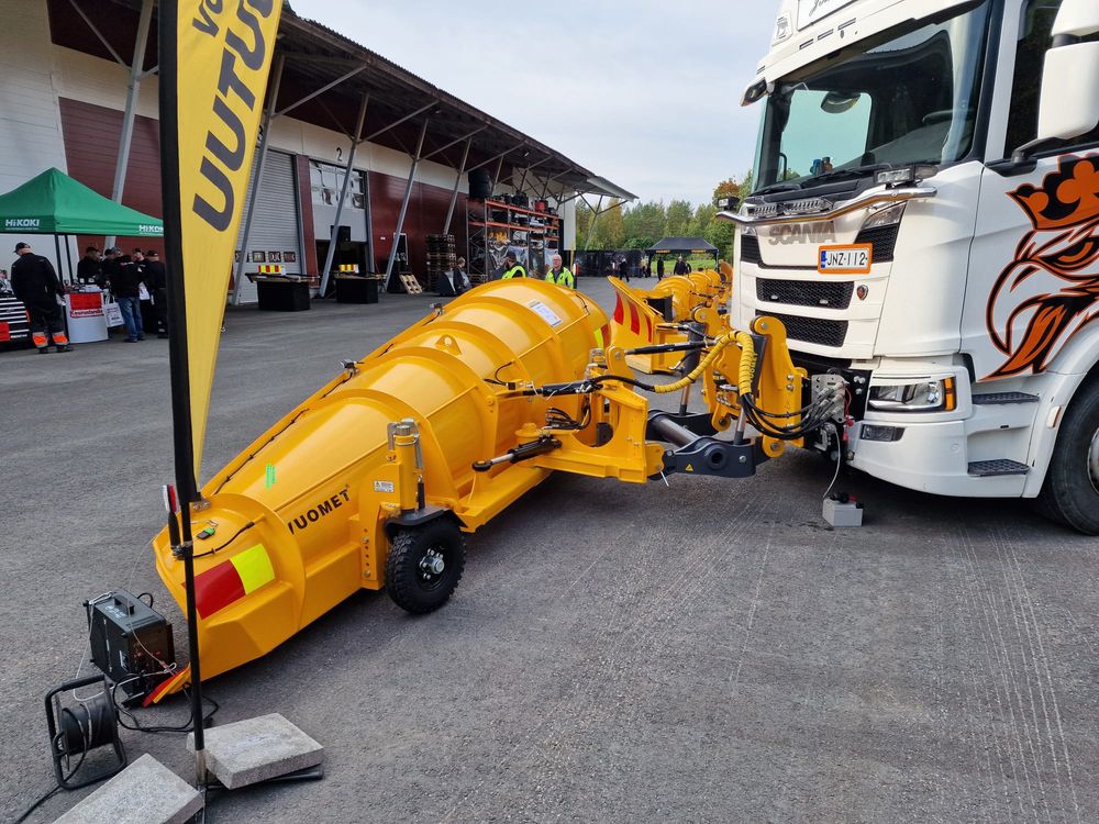 Laadukas kotimainen alueaura kartiosiivellä. Vuometin uutuus! Kuorma-auton aurapuskuriin sopiva nostolaite, johon saadaan aura 3-piste kiinnityksellä kiinni. Työleveys 280-396cm. Siiven korkeus 140cm/65cm. Kääntökulman 45°/45. Teräkulma 42°, Paino 750kg (auran peruspaino)+560kg (nostolaite) , Hyvät heitto-ominaisuudet myös matalilla nopeuksilla. Vakiovarusteet: Kovametalliterät, roiskeläppä, kulutuspala, led-äärivalot,lautasjalakset, 3-piste sovitteet ja nostolaite. Lisävarusteean saatavissa mm. tukipyörät ja muut terävaihtoehdot.